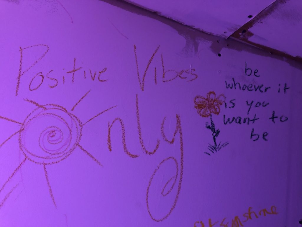 With a bag filled with markers, ears protected with ear plugs, and my body buzzing with excitement, I was always amped and ready to go to Goo Lagoon on the weekends. The house venue was a place filled with great music, Ithaca College students (like me!), and walls that soon became an audience curated museum. It was a living breathing space, both in its artwork and music that reverberated inside of it.
